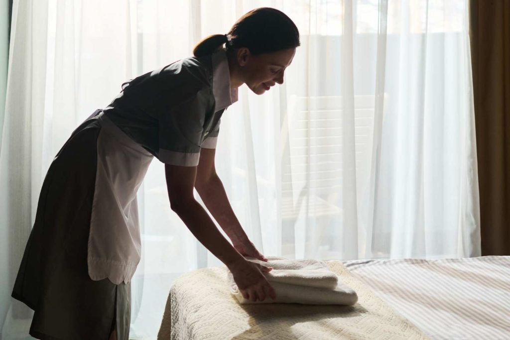 - Szobák takarítása (ágyazás, portörlés, porszívózás, textilcsere,